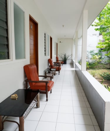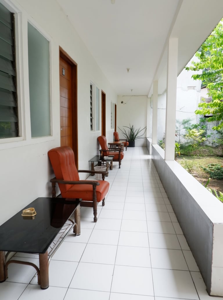 Terdapat balkon yang nyaman di Hotel Netral Jombang yang bisa digunakan untuk sekedar bersantai atau mengobrol dengan pemandangan taman yang sejuk.