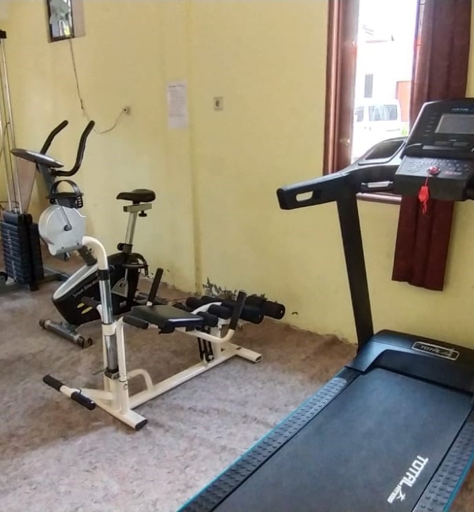 Terdapat beberapa alat fitnes seperti treadmill, bench, dumbbell, dan static bicycle yang dapat dipakai secara gratis