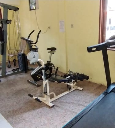 There are several fitness equipment such as treadmills, benches, dumbbells and static bicycles that can be used free of charge